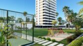 The communal area with gardens, swimming pool, paddle tennis court and covered recreation area invites you to stay after a day at the beach. To admire the sunset, on the 9th floor there is a common area with sea views, a gym, a terrace and a gourmet area.