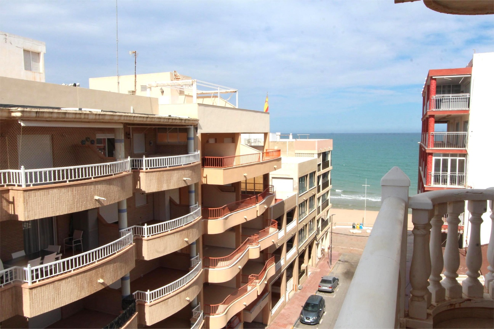 Apartment on the fourth and top floor, with a large terrace, 2 bedrooms and 2 full bathrooms, in a building that is in very good condition in general, with an elevator. The house is also in a very good general condition. The master bedroom is a very good size and has a private bathroom and air conditioning. It is sold with all furniture and appliances. A few meters from the beach and all kinds of services.