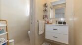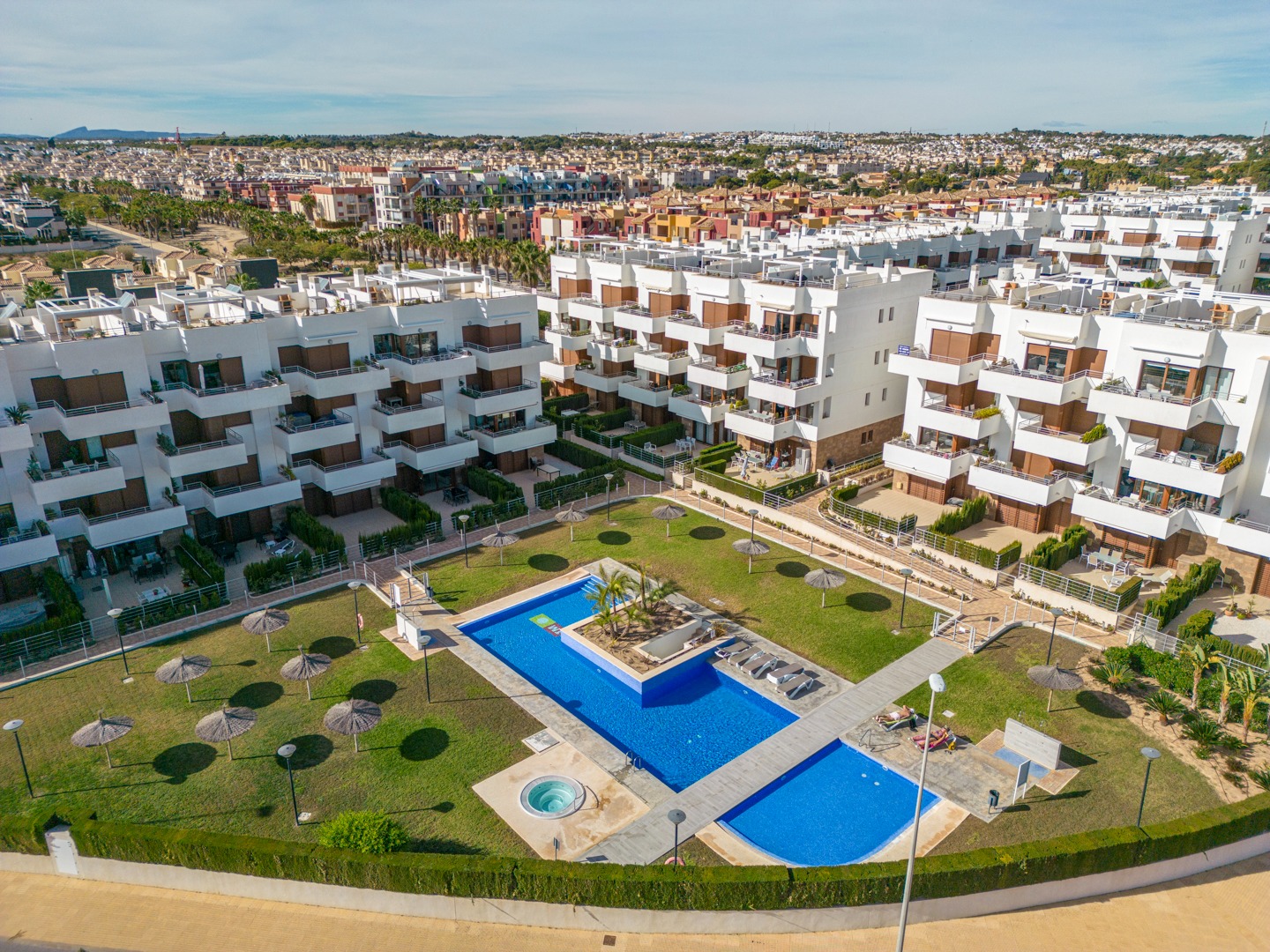 This beautifully well-kept apartment is located just behind the largest open-air purchasing center “C.C. La Zenia”, in the vicinity of 4 Golf Courses, 1500m from the beaches of Dehesa de Campoamor and Cabo Roig. You will find all conceivable amenities within walking distance. The apartment was built by the TM company, which is known for the construction of beautiful gardens in the communal areas and which have become increasingly beautiful over the years. Alicante airport can be reached in about 45 minutes via the good connection with the AP-7. The parking space is included in the price.