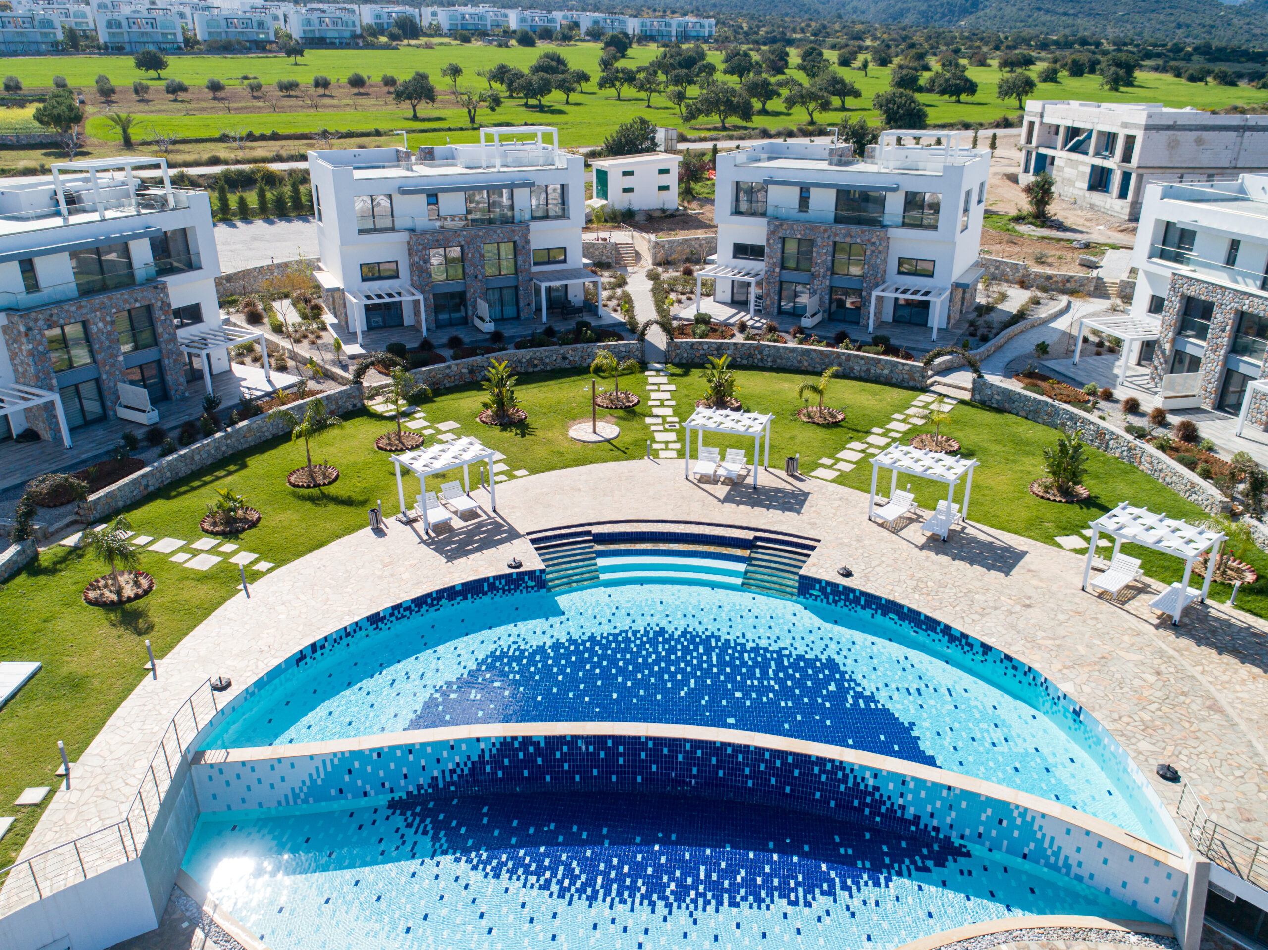 Panoramic Sea Views: The clever architectural layout ensures that the dazzling blue of the Mediterranean is visible from every residence within the community.