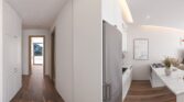 The project creates a bright, modern environment flooded with natural light, giving a sense of extra space. The well-presented large fitted kitchen offers plenty of work space to create your own Mediterranean delicacies. The fully landscaped garden can be enjoyed from the large terrace overlooking the wellness centre.